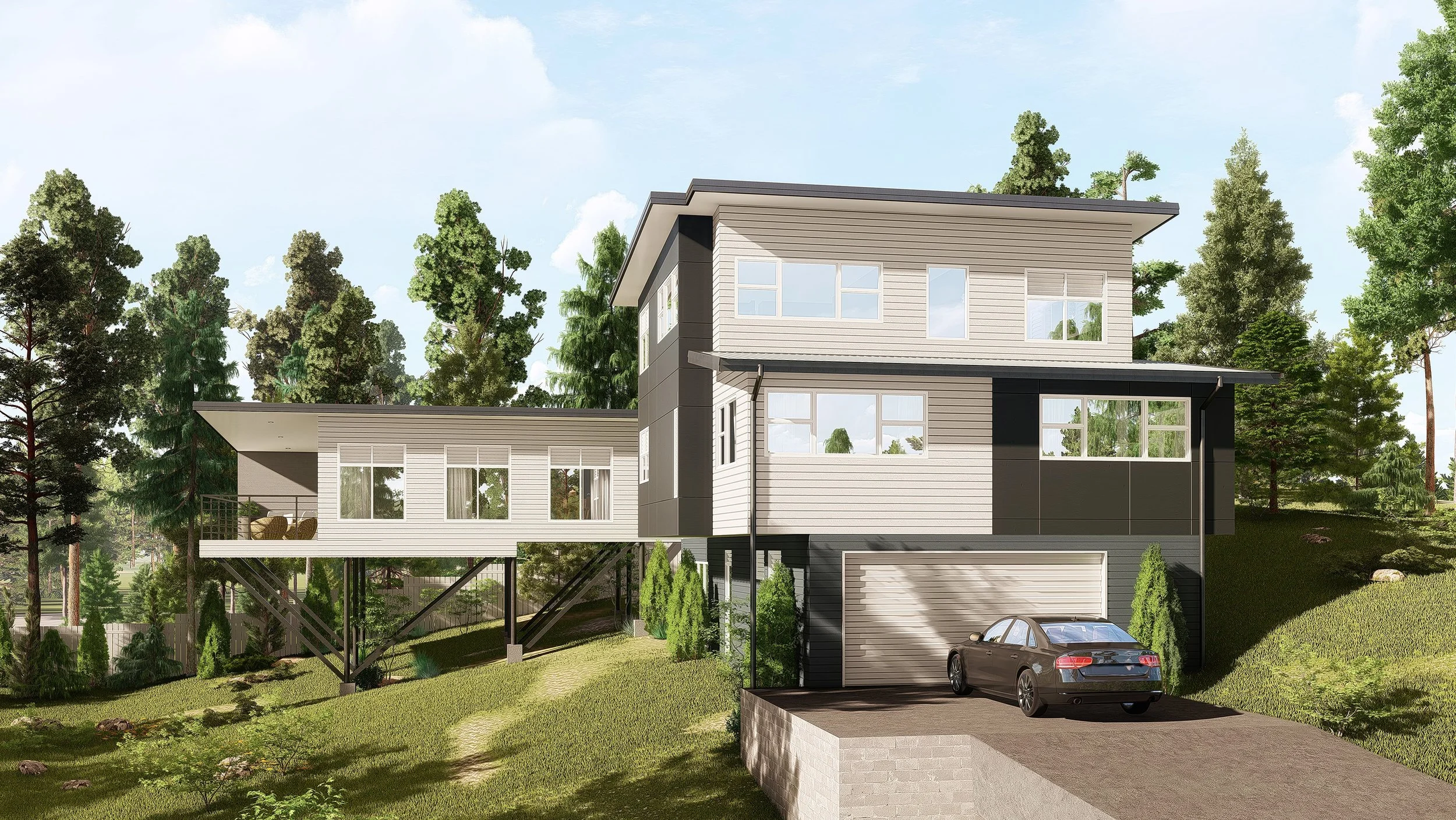 Have a look at this incredible job we recently completed for our friends at Urban Trend Construction. We weren’t provided any plans for this project and instead were given completed models of the house. Working closely with our clients, we recreated their models with our amazing 3D Render & Visualization technology. We provided them 3 Exterior Renders that showcase the new project from several different angles. Additionally, we injected their rendered model into an amazing environment giving this project an extremely effective finish.